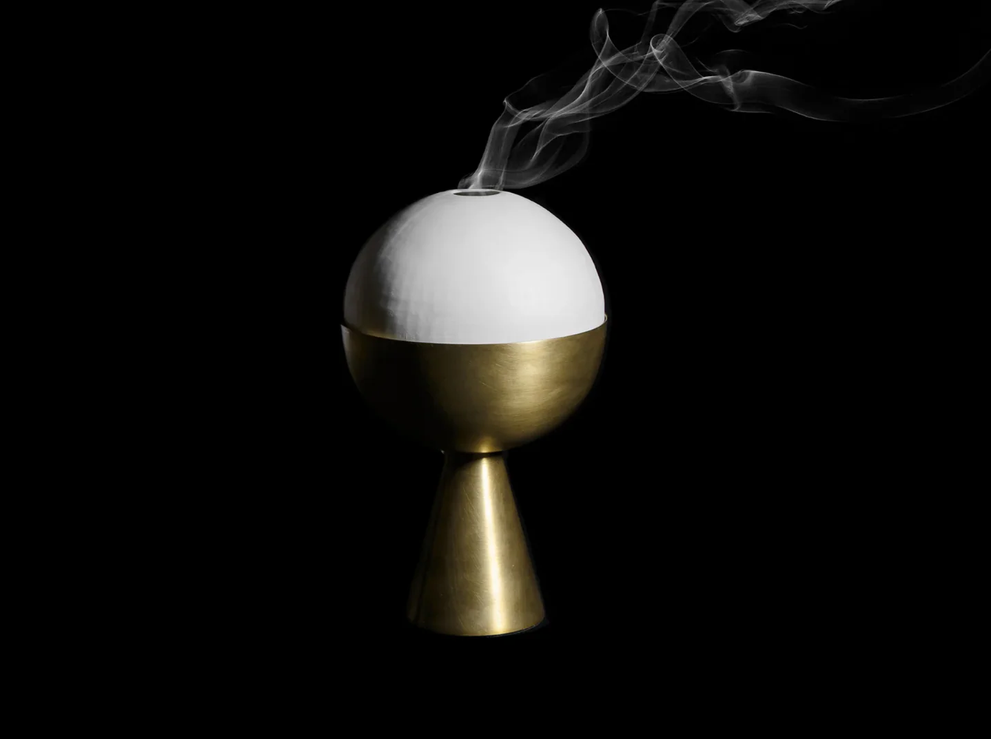 A result of experimentation with geometric forms in the Apparatus library, the Censer connects ancient ritual with the tradition of coveted objects. Utilizing the full range of Apparatus manufacturing techniques, spun, cast and machined brass are assembled to create a form that recalls a chalice. As an incense burner, smoke emerges from a hand-cast porcelain dome and as a candleholder the Censer becomes a brass torch.