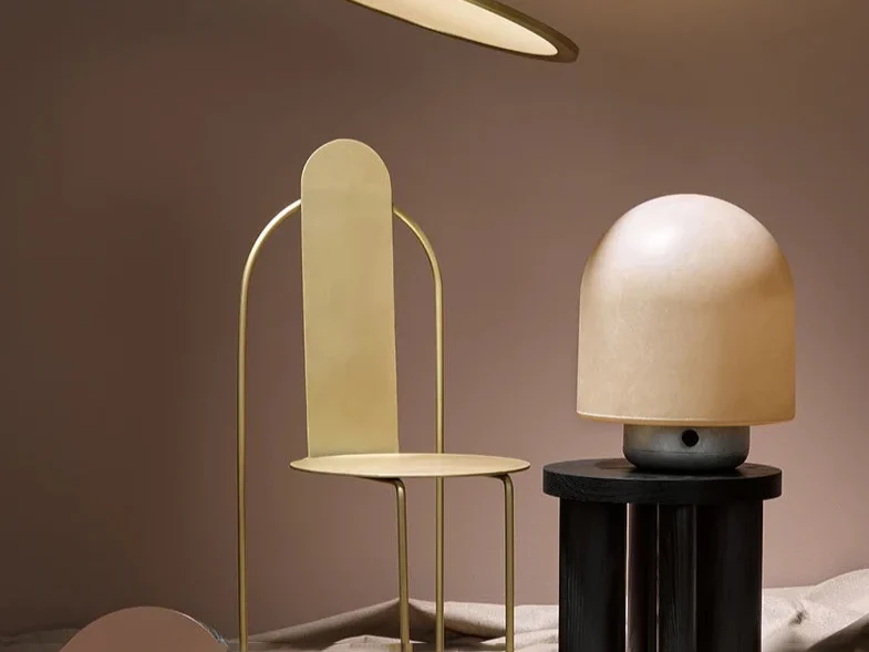Puffball, a collection of minimal lamps, draws inspiration from the rounded caps and columned stalks of wild mushrooms and toadstools. The chunky silhouettes, made of raw fiberglass and tumbled or painted aluminum, give off a warm luminescent glow.
