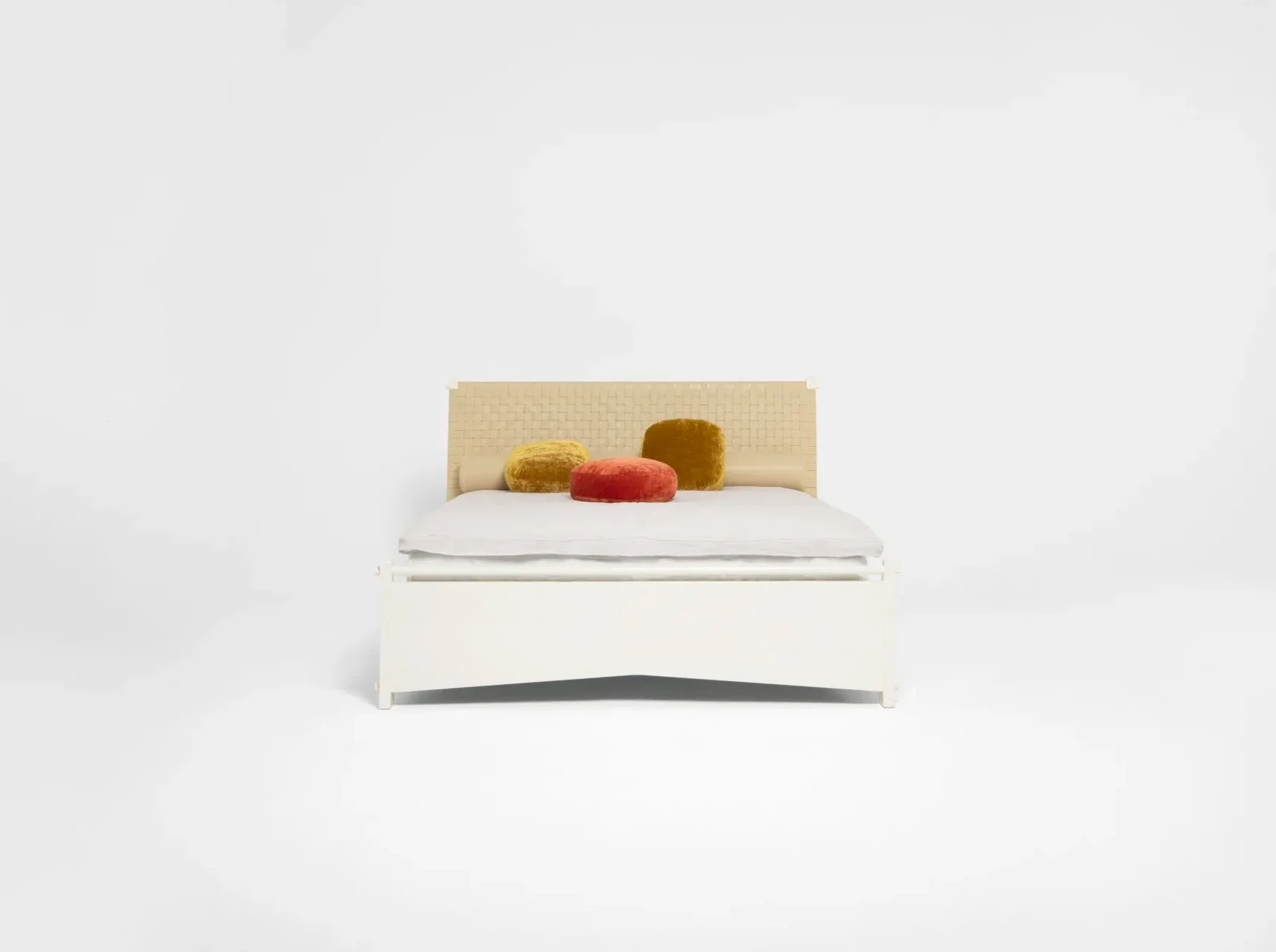 PIERRE AUGUSTIN ROSE DEHLOS LACQUER BED W71.7" x D92.5" x H49.5"