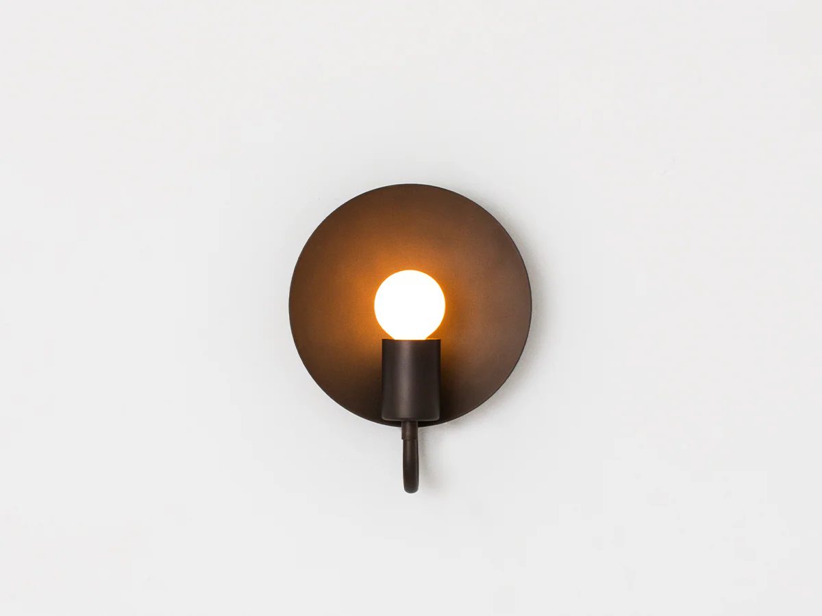 A fixed version of the classic Orbit Sconce, this fixture is perfectly proportioned for any space where a minimal profile is desired. A modern take on an early American candle form, the piece features a radiant disc that amplifies the glow from a single point of light.